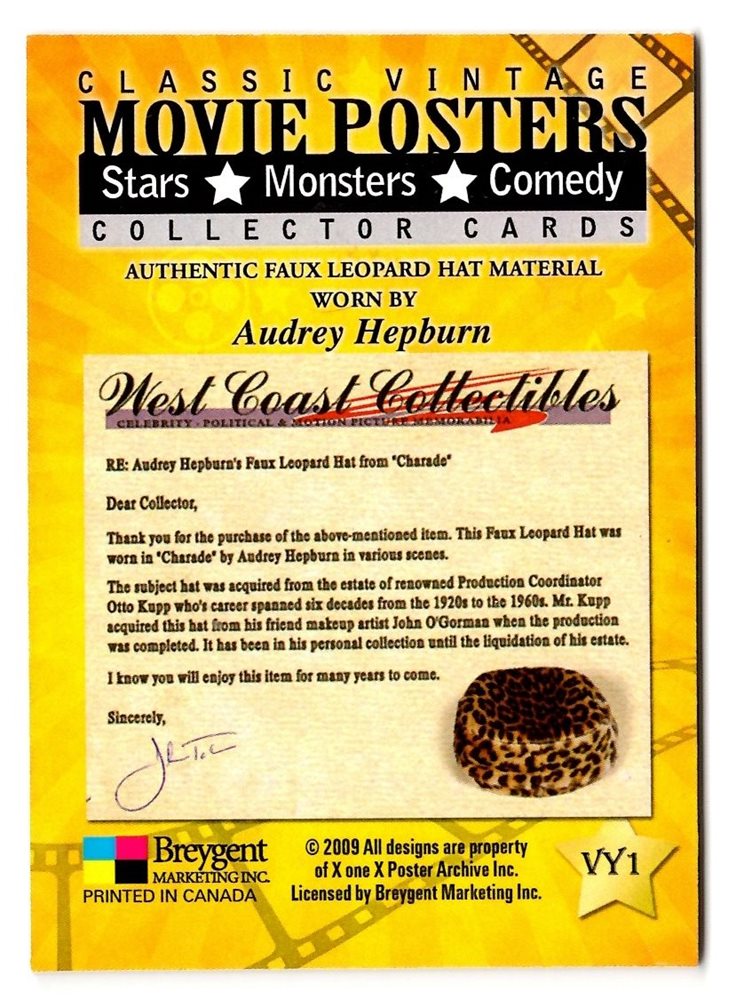 Midway through the day, The A.V. Club cheerfully chirped up about the opportunity to bid on a copy of Audrey Hepburn’s personal copy of the script for Breakfast at Tiffany’s should one “have unlimited means“. Aside from the traditionally Blake Edwards’ party sequence, Tiffany’s has never particularly warmed the cockles of my heart, but I was interested to see what else might be for sale in late September when Christie’s holds its London auction. Because, while I do own a couple of supposedly genuine screen-intended props from the remake of Charade, the opportunity to own something actually used in the original 1963 film has never availed itself to me. (A minor exception: I could own a severed swatch of fabric apparently from Hepburn’s screenworn faux-leopard fur hat, but that feels like a predatorily ghoulish way to collect “memorabilia”.)