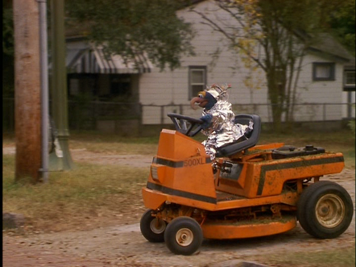 Probably not, because the soul/funk timbre of the soundtrack continues beyond this intro. It’s a lovely, strange series of needle drops that never particularly gels with the theme or the content of the film. Despite the fact that the concept seems to have come from an initiative by director Tim Hill, I couldn’t find any connective tissue between this soundtrack and the message, lensing, or theme of the movie. The film ends with — Spoiler Alert! — Gonzo’s extraterrestrial bretheren arriving and singing a cover of “Celebration” by Kool and the Gang, but an alien funk performance does not necessarily justify an entire audio soundscape with no other connective tissue. My bemusement with the “compliment” of the lyrics aside, “Brick House” is a great song, as is the later use James Brown’s “Get Up Offa That Thing” for Gonzo’s The Straight Story-esque journey to the television station, which also doesn’t really work but fakes it admirably.