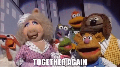 The film opens with a helicopter shot of New York City, and if you couldn’t already recognize parts of the skyline as dated, then the lack of a gyroscopic stabilizer on the camera would thorough date this footage as from the ’70s or ’80s. Immediately, the music starts with a loose series of dooting by Kermit, kind of scat singing — harkening forward to Whitmire’s excellent caroling with Tiny Robin in 1992 — but not really deviating from the melody as much as I associate with true jazz scat. Regardless, it is a pleasant introduction to the melody of “Together Again”, the song so catchy that they used it again as the closing number to Most Wanted thirty years later.