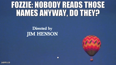 However, it would be remiss of me not to point out that The Muppet Movie does open with an absolute goddamn public service: it not only names Staler and Waldorf — names I can’t remember not knowing, but which seem to be largely opaque to much of the general public… a comprehensive text search of transcripts of current podcasts as well as conversations around me at the Museum of the Moving Image’s Jim Henson exhibit would reveal that hardly anyone knows that “those two old Muppets in the balcony” even have names — but also tells us which is which, something even I have trouble remembering on occasion. The film then very leisurely introduces the various personnages with a series of small in-character moments. The whole thing is very unhurried, maybe even deleteriously so. So it’s a welcome gag that Animal and the various Muppets (while displaying the worst cinema-going etiquette ever… something that they apparently were wont to continue thirty-two years later) get impatient for the film to begin and bully Kermit into starting the film without thanking everyone involved. (A joke, of course, continued in Muppet Caper‘s credits, as well — as I’ve previously mentioned — as in Bloom County in 1982.)