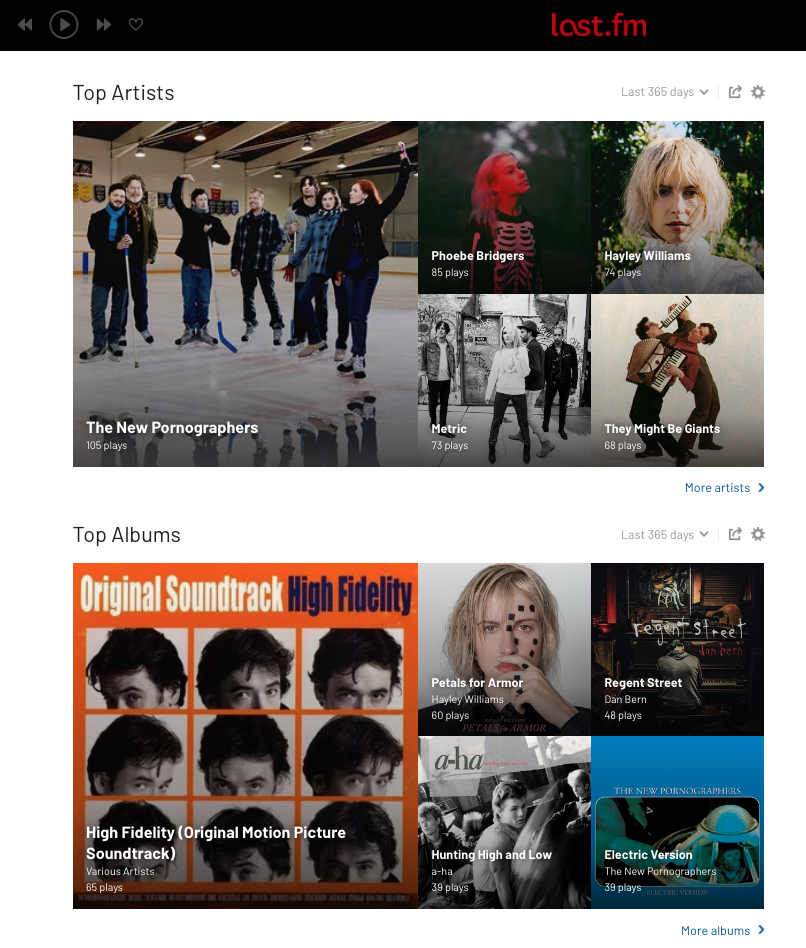 - Since I began this post by pointing out my music listening has decreased, it shouldn’t surprise anyone that I don’t use Spotify enough to generate meaningful stats in its popular post-sharing scheme. But that’s more due to the fact that I still prefer to buy music and listen to it on my computer (until I have to upgrade and that goes away). But I do enjoy the same impulse of assigning numbers to the habits and trends I’ve vaguely noticed over time. Luckily, I still pop open AudioScrobbler about once a week in order to upload some of my stats to Last.fm. They won’t fully process 2020 until it’s actually over — Think of that! Statistical accuracy! — but I will enjoy their summary when it’s ready.