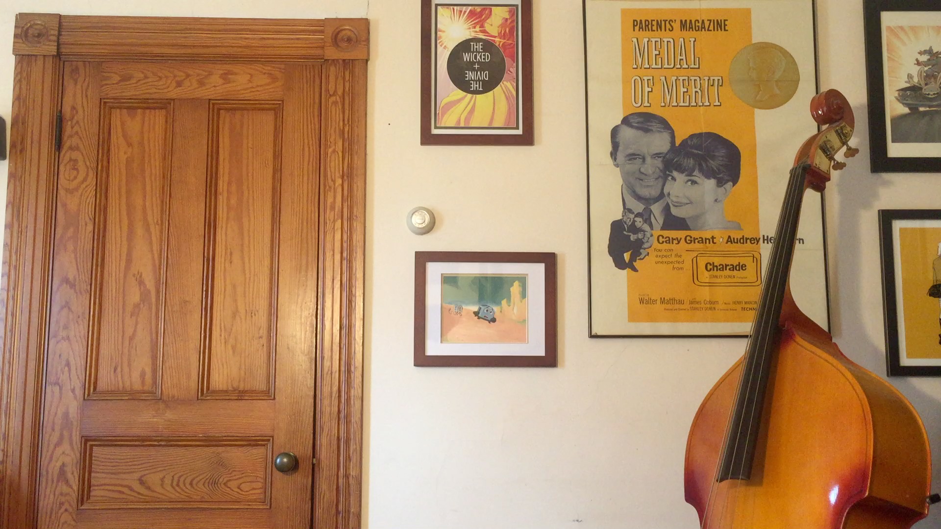 I tried to learn to play upright jazz bass between 2000 and 2004. I’d been enjoying doing a vocal impression of a plucked upright bass for several years beforehand — probably ever since my voice dropped and I re-listened to Floyd Pepper performing Johnny Cymbal’s “Mr. Bass Man” — but I did think that it might be more impressive to actually be able to play the instrument instead of miming it. However, to get good at something one needs to practice, and at that particular window of my life, between holding down a job and a half, trying to build up my portfolio as a future comic book artist, and transforming into someone who would be defined as “extremely online“, it was hard to find the time to play a bass badly often enough that I would eventually get slightly better. So when I went to grad school to learn librarianing, my bass went into storage, as it was too unwieldy to fit into my two-room, $480-a-month studio apartment. When I graduated and acquired a job and an apartment with two and a half more rooms in it, my bass returned, but in the less active role of now being referred to as “my most beautiful and expensive piece of furniture.”