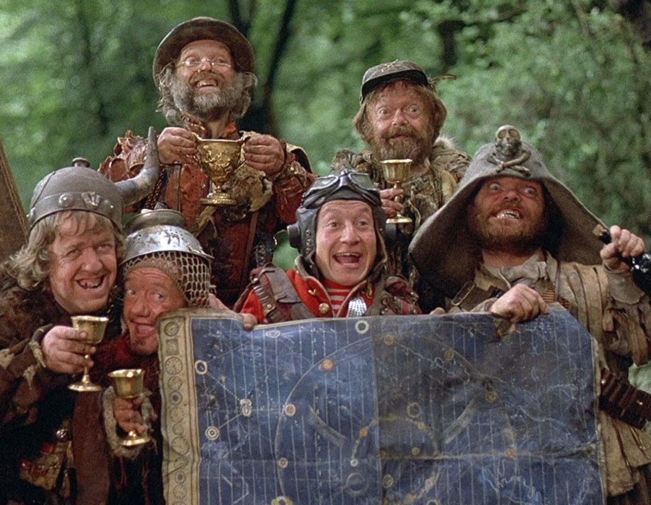 I think it’s pretty clear that I don’t have a lot of critical distance from this one. So on a scale of I Don’t Give A Monkey’s, Monkey In The Middle, or A Great Ape, I will solidly and confidently declare this is A Great Ape!, I think it’s possible to disagree with me. But I would find it difficult to listen seriously to a counter-argument. It ticks so many boxes! And it really feels like the script does everything that Jabberwocky did, but does it well this time ’round: an unchanging, static hero, but this time successfully affecting the characters around them, so that they grow and change; an ironic ending that lands — and lands hard! — successfully and comically undermining a heroic story structure; satire of commercialism that is interwoven throughout, not just feinted at. It doesn’t feel of a piece with Jabberwocky, but structurally Time Bandits is addressing the same major themes and worrying at the same preoccupations, but doing so with stronger comic set-pieces, better gags, and scarier monsters (it is oft-cited that Jo Rowling wanted Gilliam to direct Harry Potter, and has there ever been a clearer line of descendence than the dementors being the offspring of Evil’s tentancle-handed Mari Lwyd beasties?).